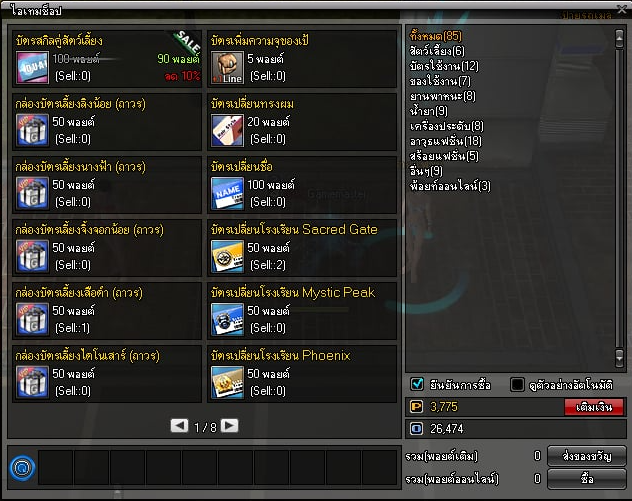 กดปุ่ม icon รถเข็นเพื่อเปิดหน้าต่างไอเทมช็อป
